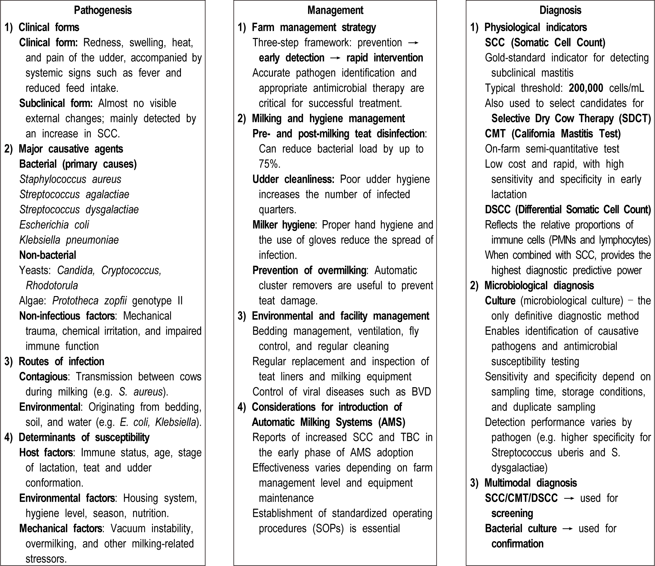 젖소 유방염에 관한 종합적 고찰: 병인론, 경제적 영향, 진단 혁신 및 지속가능한 방제 전략